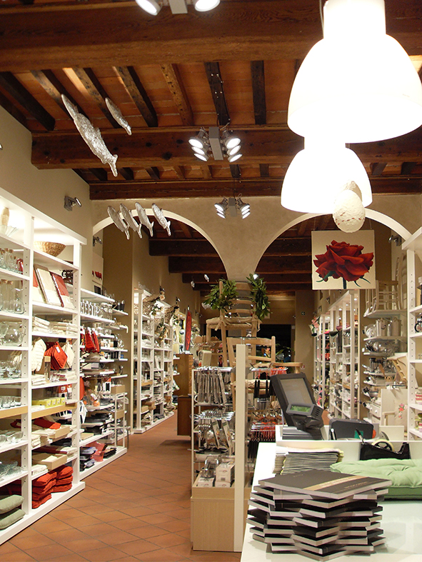 Il progetto ha riguardato la disposizione degli spazi interni e la creazione di ampie zone per l’esposizione: lo spazio di circa 400 metri quadrati  prevedeva un grande vano centrale, dove sono sistemanti i prodotti principali e riguardanti la zona living della casa.
