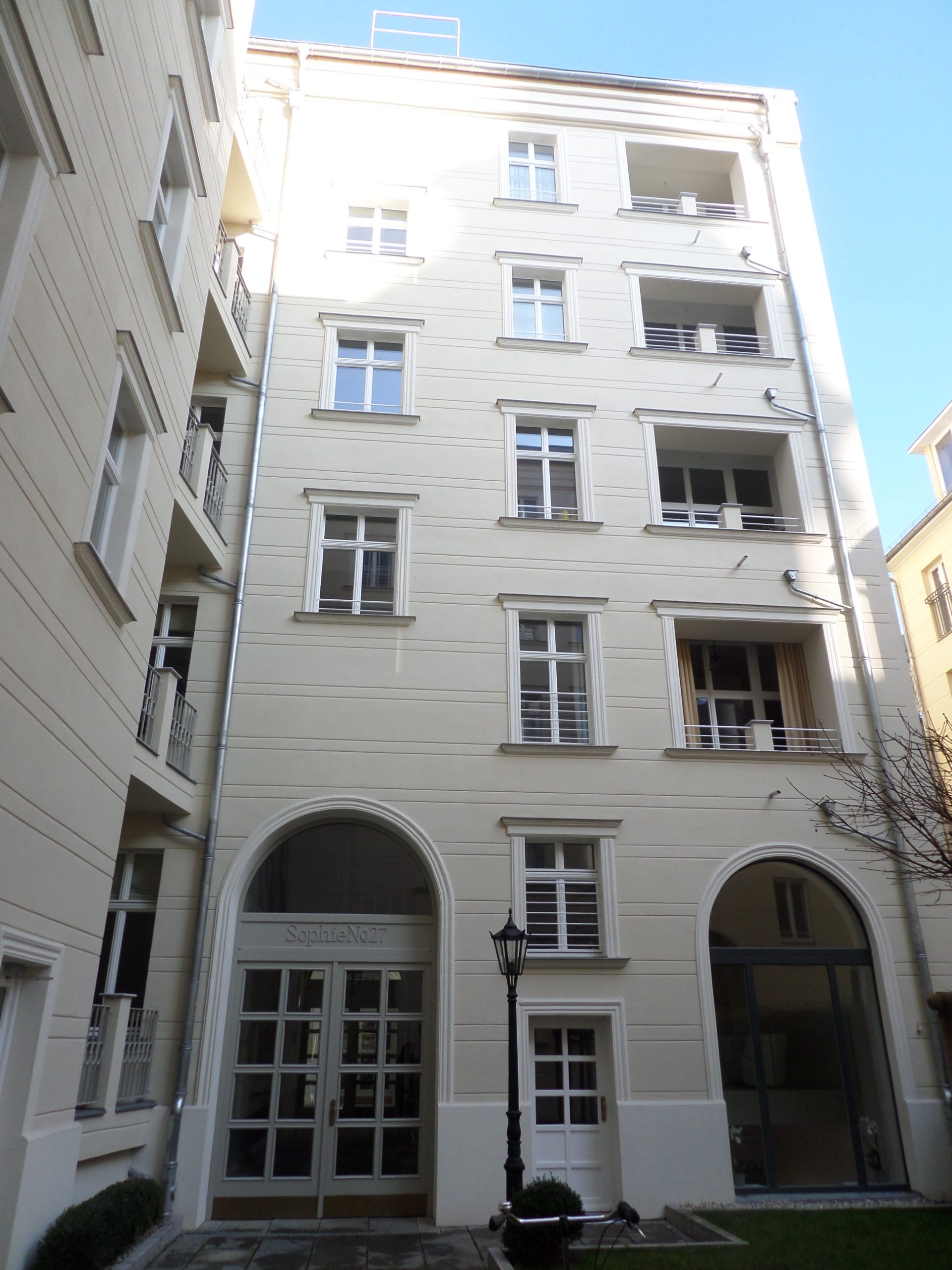Il palazzo posto in Sophienstrasse al civico 27, prima del restauro presentava una degradata, ma importante facciata ed un retro estremamente trascurato.