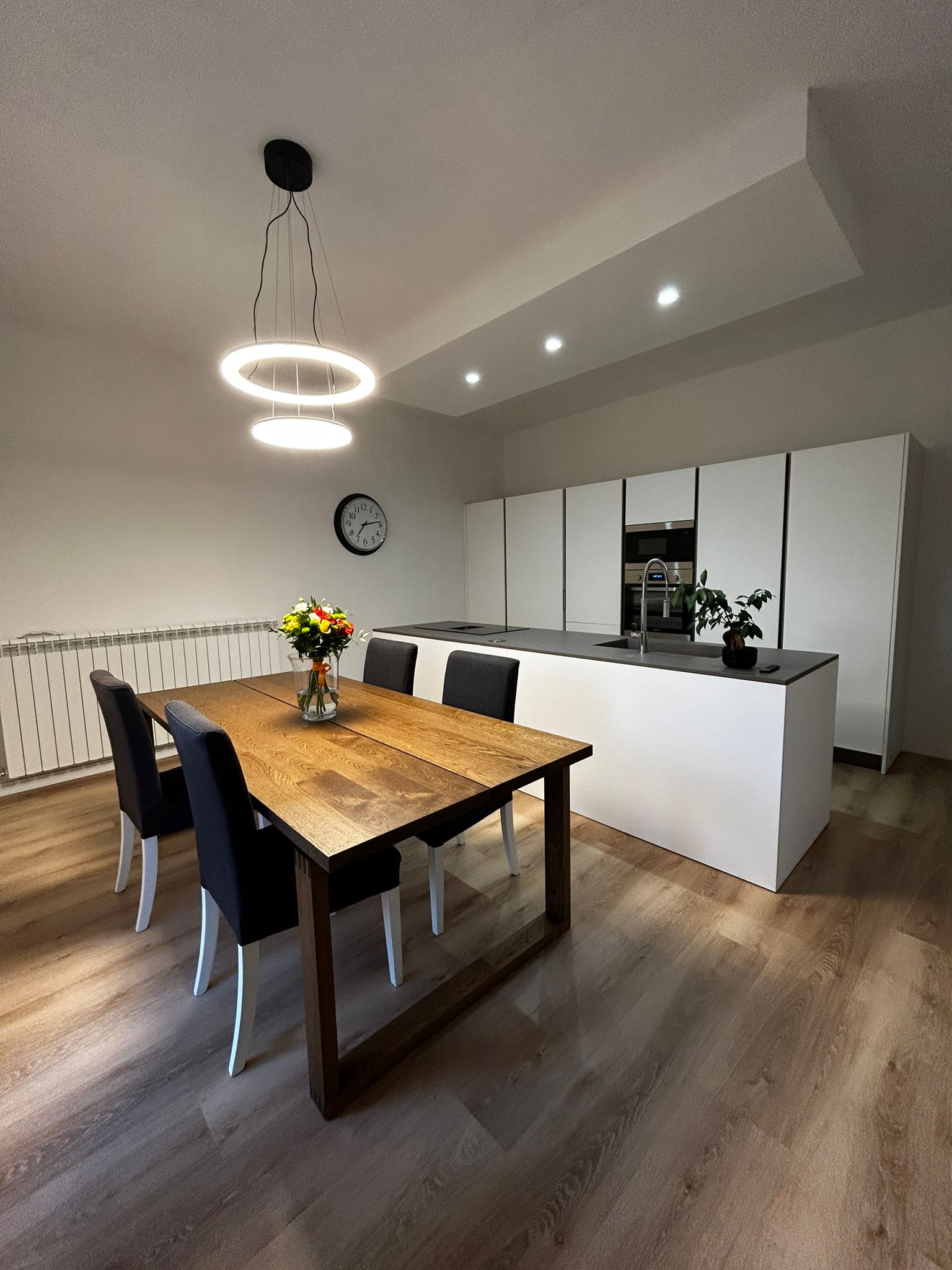 Il progetto ha riguardato la ristrutturazione di un edificio rurale su due piani, la distribuzione iniziale della zona giorno è stata completamente stravolta ed oggi fa da padrona la grande cucina che nelle armadiature nasconde, oltre agli elettrodomestici gli spazi di servizio.
