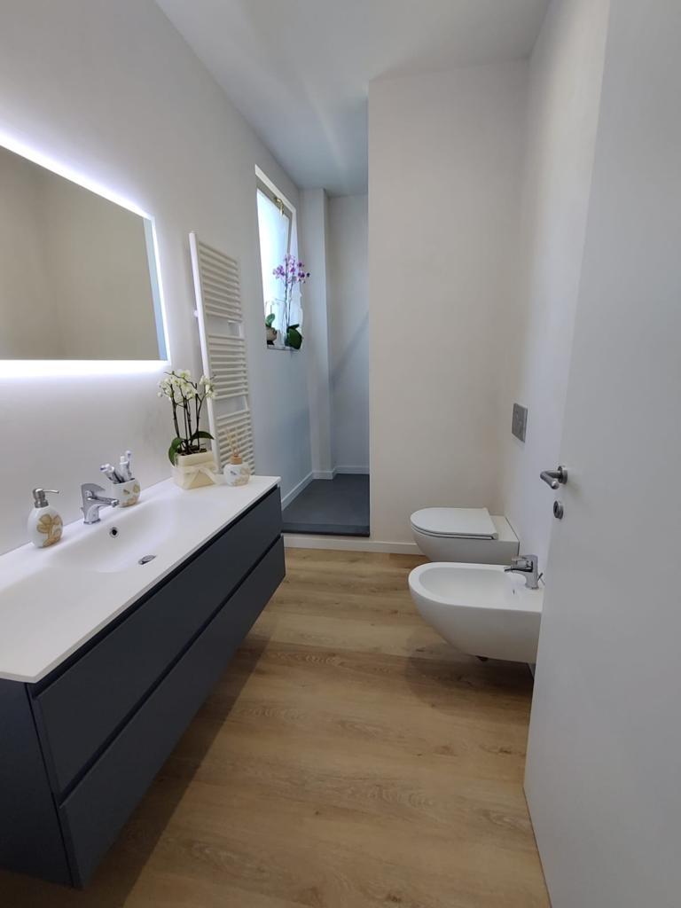 Sono stati scelti nuovi pavimenti e sono stati ristrutturati i bagni esistenti, utilizzando materiali essenziali ma con un richiamo all’antica tradizione delle mattonelle in pasta di cemento.