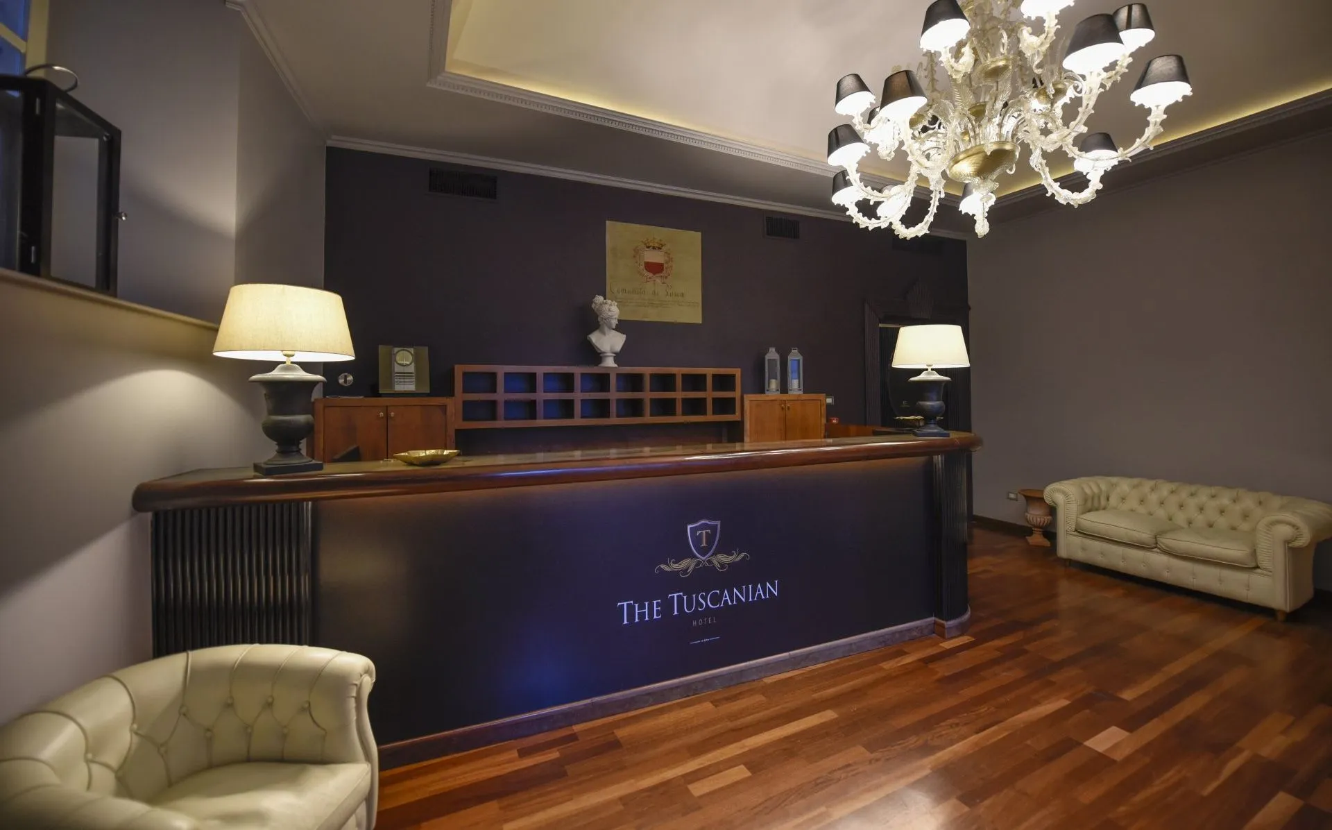 Nel cuore di Lucca, un albergo storico e la sua antica osteria. Il restyling architettonico della struttura si è basato sull’uso sapiente di colori scuri e di luci nelle parti comuni della reception, del bar e delle zone relax.
